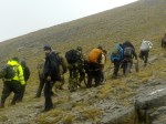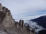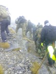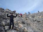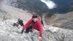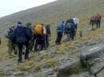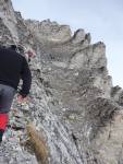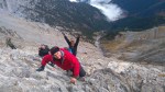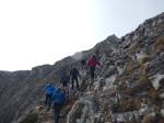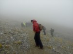 Μετά το Σκολιό η ομάδα με το Γιώργο ξεκίνησε το σκληρό αγώνα για την ασφαλή κάθοδο , ενώ εμείς συνεχίσαμε προς τη Σκάλα, για να αξιολογήσουμε τις συνθήκες ανόδου στο Μύτικα. Σε πείσμα κάθε πρόγνωσης, αίφνης ο ουρανός άνοιξε, καθάρισε κι έβγαλε ήλιο, σαν το ίδιο το Βουνό να μας καλωσόριζε και προσκαλούσε να συνεχίσουμε την πορεία μας. Η αναρρίχηση αποτέλεσε ένα άλλο πεδίο εμπειρίας, εξωτερικής, αλλά κι εσωτερικής ταυτόχρονα. Κόλλημα στο βράχο, με φαράγγια απίστευτα να χάσκουν από κάτω, υποβλητική κι άγρια ομορφιά, απίστευτοι πέτρινοι σχηματισμοί, γλυπτά της γης να αιωρούνται μεταξύ γης κι αέρα κι ο καθένας από την ομάδα να προχωρά προσεκτικά, με σεβασμό στο εγχείρημα, θέληση να ανέβει, πείσμα να ξεπεράσει κόπο και την όποια φοβία, οι πιο άπειροι, αλλά και φροντίδα για τους υπόλοιπους της ομάδας.