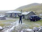 Αφού λάβαμε απογοητευτικές μετεωρολογικές προβλέψεις, που περιλάμβαναν δελτία για έκτακτα ακραία καιρικά φαινόμενα και χιονοπτώσεις στα ορεινά, αποφασίσαμε να ξεκινήσουμε, ανεξάρτητα των προγνώσεων. Παρασκευή βράδυ, της 21ης Οκτωβρίου 2016, μία μόλις εβδομάδα πριν τη μεγάλη Εθνική μας Εορτή, που πολλοί επιδιώκουν τη λήθη της, εμείς σε μια αναζήτηση παραμελημένων αξιών, περάσαμε την Ελασσόνα, Καλλιθέα και Καλύβια και βρεθήκαμε σε δύο τζιπ να ανεβαίνουμε μέσα σε βροχή, που λίγο μετά έγινε χιονόνερο και μετά ομίχλη με αέρα, που δεν προμήνυαν ευοίωνο μέλλον, τον κακοτράχαλο χωματόδρομο, που ανεβάζει στο καταφύγιο ανάγκης Καλύβα Χριστάκη. Αυτό βρίσκεται στην «Μεγάλη Γούρνα», σε ύψος 2.430 m, στην διαδρομή του μονοπατιού Ε4, Κοκκινοπηλός – Σκάλα κι αποτελείται από δύο λιθόκτιστα κτίσματα, το παλιό και το νέο καταφύγιο, το παλιό χωρίς καν αρμούς, που μπορεί να φιλοξενήσει σε περίπτωση κακοκαιρίας 8 άτομα και το νέο, 30 ατόμων. Δεν έχουν ρεύμα, νερό, τουαλέτα και θέρμανση, παρά μόνο τζάκι, κρεβάτια και στρώματα, ενώ το χειμώνα σκεπάζονται από το χιόνι.