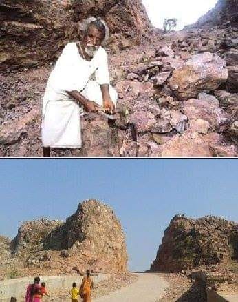 Η γυναίκα του πέθανε αβοήθητη γιατί το νοσοκομείο απείχε 70 χλμ και δεν υπήρχε ασθενοφόρο. Πικραμένος άρχισε να σκάβει μόνος του το βουνό για 22 χρόνια. Έφτιαξε δρόμο. Μείωσε την απόσταση σε 15 χλμ μόνο. Να μη βρει άλλος άνθρωπος τέτοιο άδικο θάνατο όπως η γυναίκα του. Η δύναμη του ενός