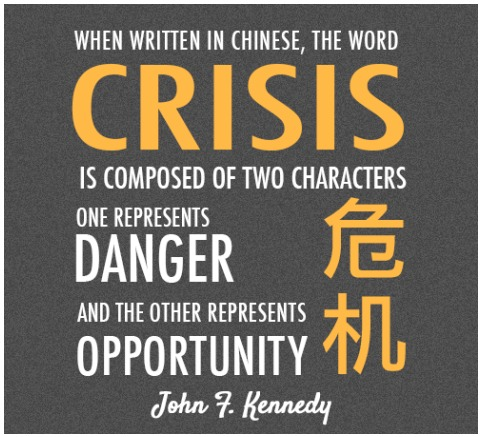 Το ιδεόγραμμα της έννοιας ΚΡΙΣΗ στα κινεζικά αποδίδεται με τη σύνθεση δύο εννοιών, αυτή του κινδύνου και αυτή της ευκαιρίας!