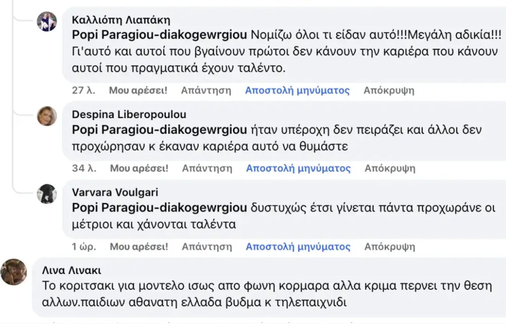 Η μητέρα της Ηλιάνας, κυρία Πόπη Διακογεωργίου, ξέσπασε στο Facebook, γράφοντας χαρακτηριστικά: «Δεν περάσανε την κόρη μου που ήταν από της πρώτες του knock outs και πέρασαν την άφωνη γιατί είχε το βύσμα». Το σχόλιό της πυροδότησε αλυσιδωτές αντιδράσεις, με αρκετούς χρήστες να συμφωνούν πως «μεγάλη αδικία!!!» και ότι «έτσι χάνονται ταλέντα». Άλλοι προσπάθησαν να τη στηρίξουν, αναφέροντας πως πολλοί απορρίφθηκαν από talent shows αλλά στη συνέχεια δημιούργησαν αξιόλογη πορεία.